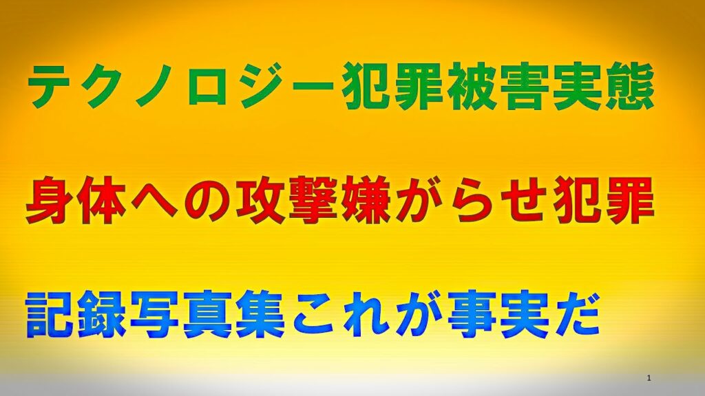 今回はテクノロジー犯罪の被害者さんからの被害証拠写真 被害状況説明 様々な日常の嫌がらせ行為 ほのめかし行為 について語って行きます。テクノロジー犯罪は被害者の方だけではなくその家族おも巻き込んでさらに悲惨な形式をとるのは当会のTさんの例に顕著に表れております。加害者は被害者の方々の家族の絆さえも奪って苦しみを押し付けてきます。今回の例では被害者の方の高齢の母親をターゲットにしているようです、そしてその耐えがたい苦しみを子供たちに押し付けてきます。一般論として加害者は被害者の一番弱いところをついてきます。精神的 肉体的 経済的な弱みにありとあらゆる手段を用いて襲い掛かってきます。我々は冷静ではいられませんが落ち着きを取り戻す努力が必要です。同じ被害者の人々と連携を保ってこの試練を乗り越えましょう。いま、この問題になにかするべきことがあるかどうかをきめるのはほかならぬあなた自身です。# テクノロジー犯罪 # マイクロ波 # 電磁波